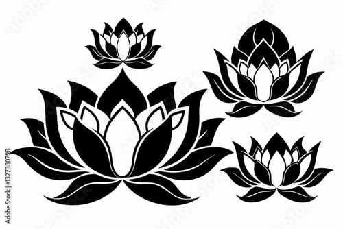 set of four lotus flowers line art silhouette vector illustration