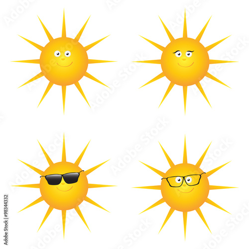 Set of funny smiling sun