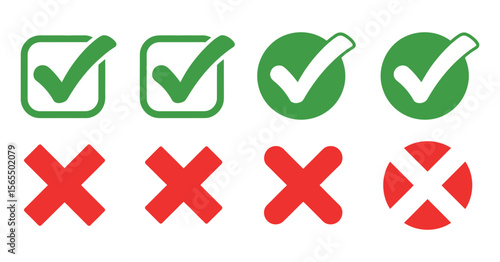 Set of green checkmark and red cross icons in different shapes