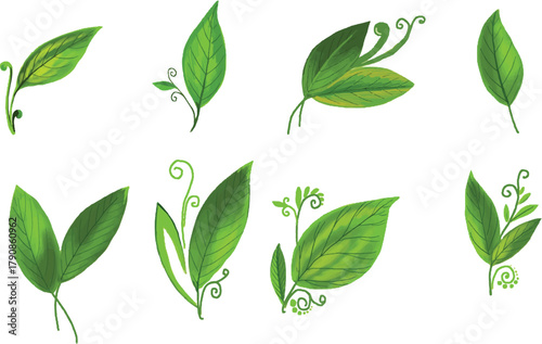 set of green leaves isolated on white background, editable vector file