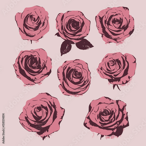 set of grunge isolated rose flowers vector design