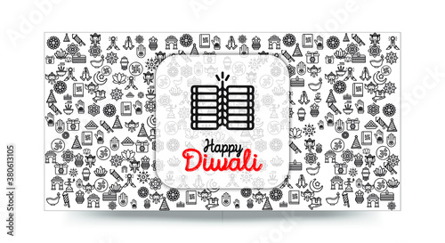 Set of Hand draw Happy Diwali Doodle backgrounds. Objects from Diwali doodle icons.