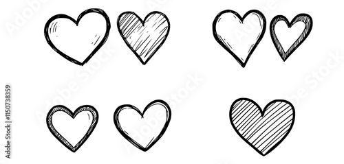 Set of hearts icon, heart drawn hand - stock vector, Doodle hearts sketch set. Various different hand drawn heart icon love collection isolated on white background.