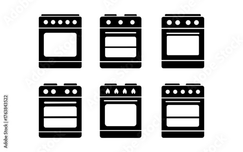 Set of kitchen stove icons in minimalist silhouette style