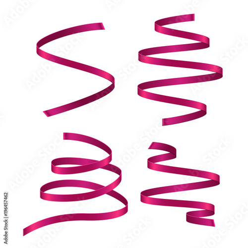 Set of light pink curling streamers on white background