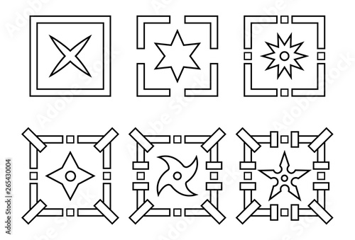 Set of line style icons of a shuriken. Ninja weapon. Logo, emblem. Clean and modern vector illustration for design, web.