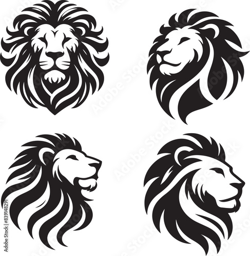 set of lion Vector illustration Silhouette white background.
