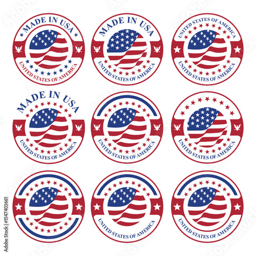 set of made in usa stamp circle logo vector design with united states flag element