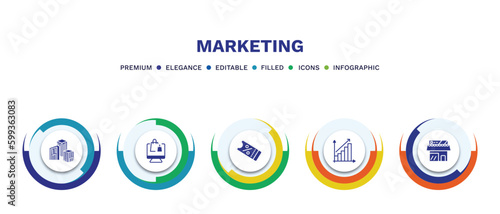 set of marketing filled icons. marketing filled icons with infographic template. flat icons such as enterprise, online store, coupon, yield, shop vector.
