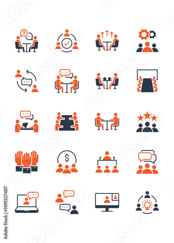 set of meeting icons, conference, interview