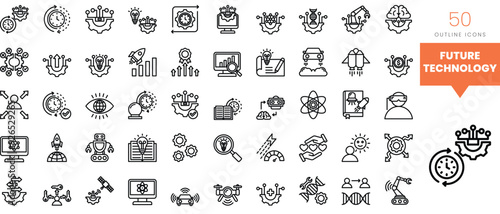 Set of minimalist linear future technology icons. Vector illustration