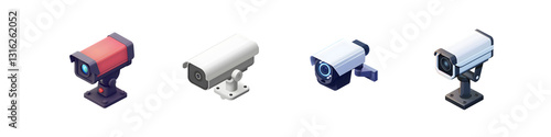 Set of Modern CCTV Camera Graphics in 3D Style