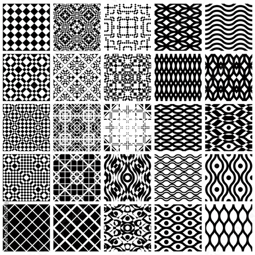 Set of monochrome geometric seamless patterns.
