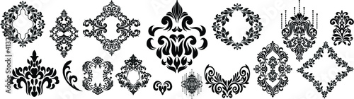 Set of Oriental vector damask patterns for greeting cards and wedding invitations.