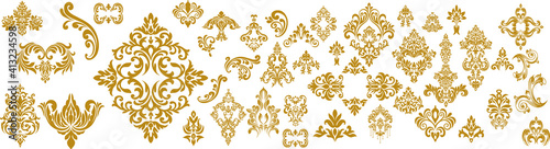 Set of Oriental vector damask patterns for greeting cards and wedding invitations.