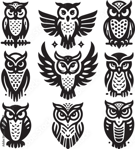 set of owls silhouettes vector illustration