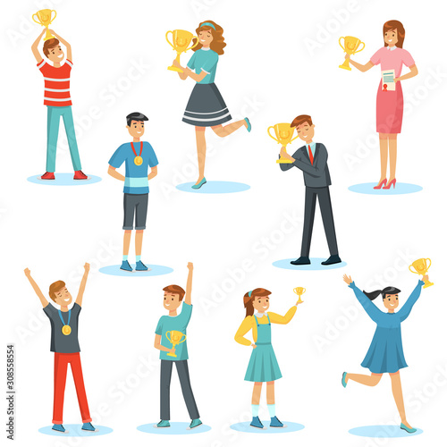 Set of people winners happy with victory vector illustration