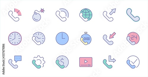 Set of Phone vector line icons. It contains the symbols of incoming, outgoing, missed calls, global call and round the clock online support and much more. Editable Stroke. 32x32 pixels.