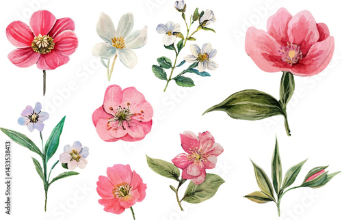 set of pink flowers