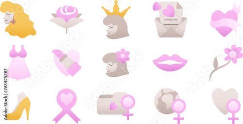 set of pink woman and female icons