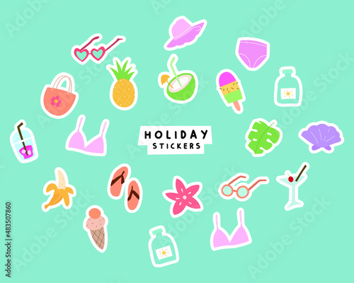 set of printable sticker element illustrations. doodle cartoon collection related to the beach. cute element for sticker and decoration.