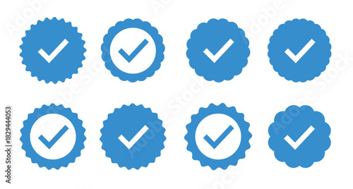 set of quality icons blue flat star shape stickers profile