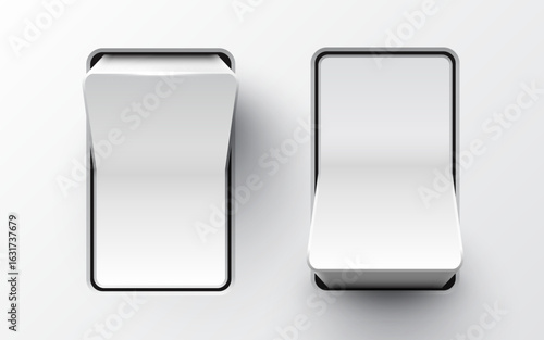 Set of realistic toggle switches in on and off positions. Plastic button.