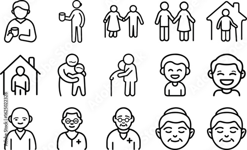 Set of Senior Icons on White Background Elderly People Symbol Collection
