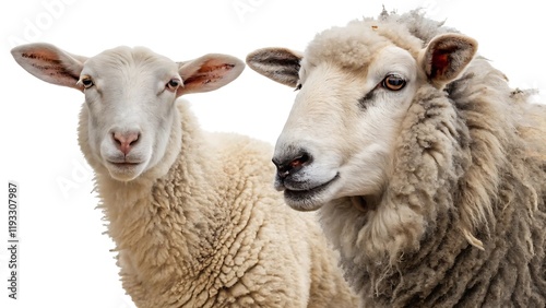 Set of sheep portraits on transparent background. Domestic and wild animal concept