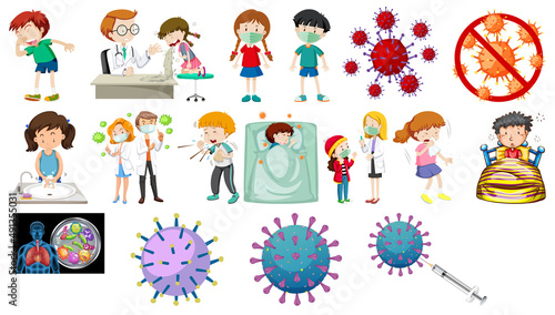 Set of sick people with different symptoms