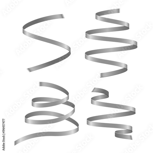 Set of silver curling streamers on white background