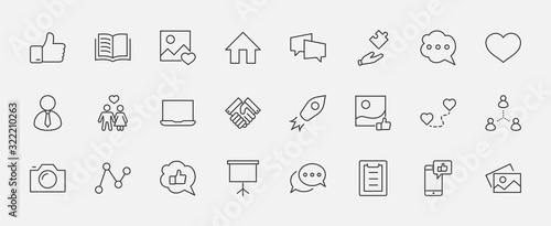 Set of Social Networks Related Vector Line Icons. Contains such Icons as Profile Page, Rating, Social Links and more. Editable Stroke. 32x32 Pixels