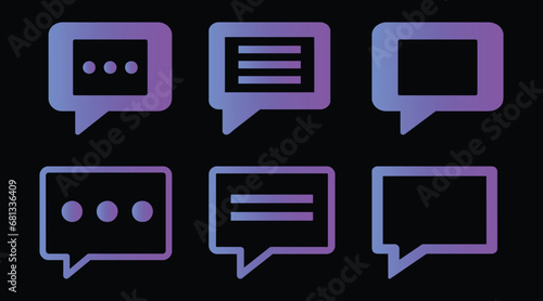 Set of speak bubble text gradient, chatting box, message box design, flat vector isolated on black background