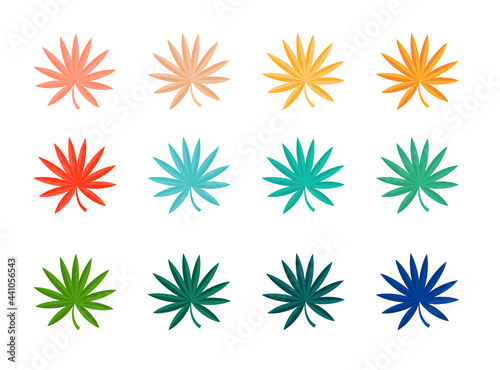 Set of Summer tropical leaves isolated on white background. Vector illustration