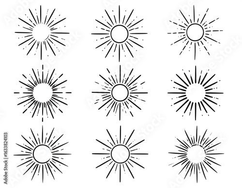 Set of sunburst graphic elements