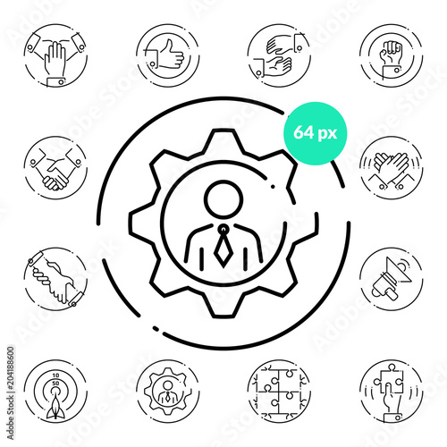 Set of team building icons on transparent background.