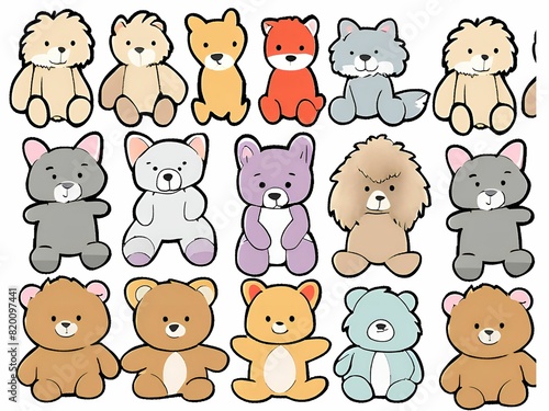 set of teddy bear on white background