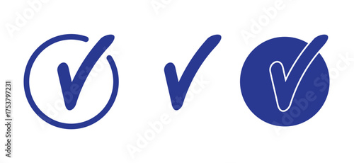 Set of Three Blue Check Mark Icons Vector Illustration