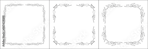 Set of three thin elegant black and white ornamental frame, decorative border, corners for greeting cards, banners, business cards, invitations, menus. Isolated vector illustration.