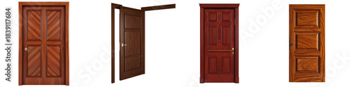 Set of traditional wooden door patterns with carved panel divisions on transparent background