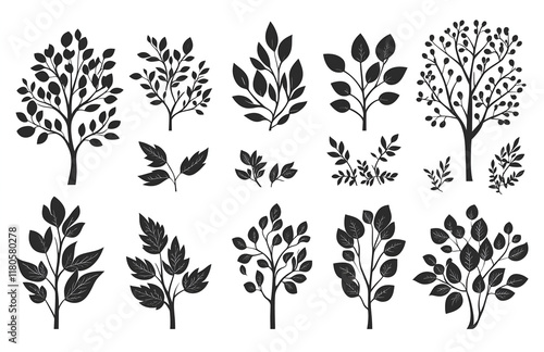 set of trees silhouettes on white