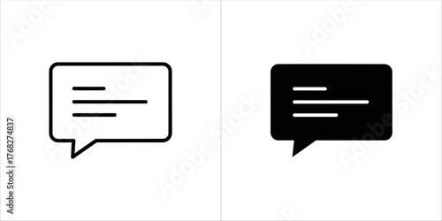 Set of two chat bubble icons, one outlined and one solid black