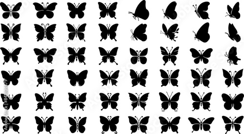 Set of vector butterfly icons . Butterfly silhouettes collection . Exotic flying butterflies logo side view.
