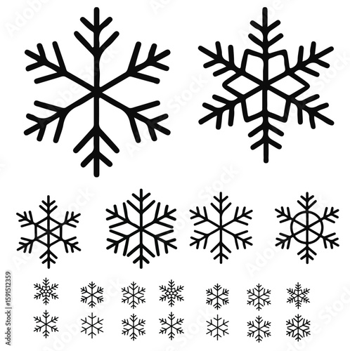Set of Vector Snowflakes – Geometric Winter Elements for Holiday and Seasonal Designs