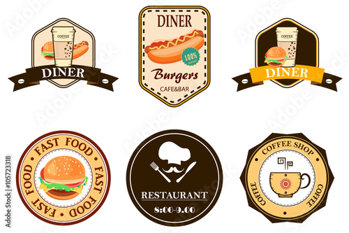 set of vintage fast food restaurant signs, panel, badge and label. vector