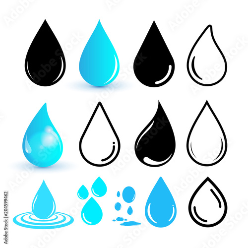 Set of water drop icon. Drop line icon. Flat design. Vector illustration. Isolated on white background
