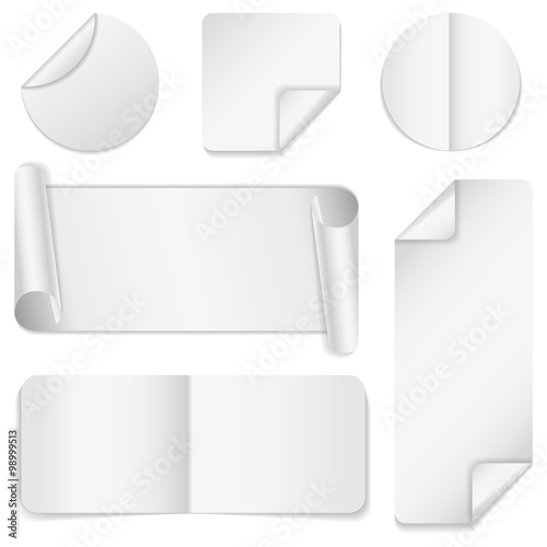 Set of white paper stickers on white background