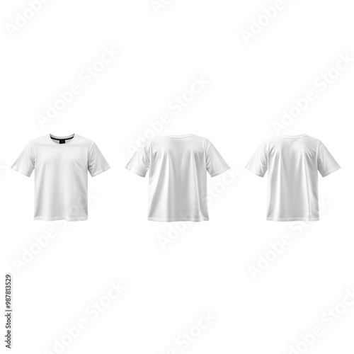 Set of white t-shirt front and back view mockups, cut out