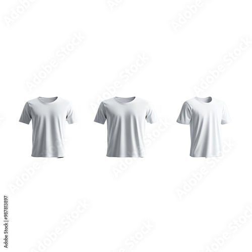 Set of white t-shirt front and back view mockups, cut out