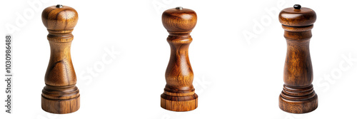 Set of wooden pepper mill isolated on transparent background (3)